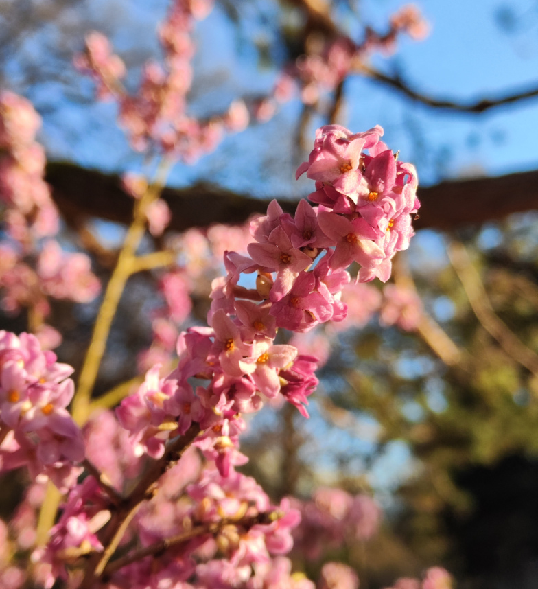 Zaghaft, aber umso farbiger macht sich der Frühling in den Freilandanlagen des Botanischen Gartens breit. Einer stiehlt dabei allen die Show: Der Echte Seidelbast trumpft nicht nur mit leuchtend rosa Blütenreigen, sondern auch mit betörendem Duft.
